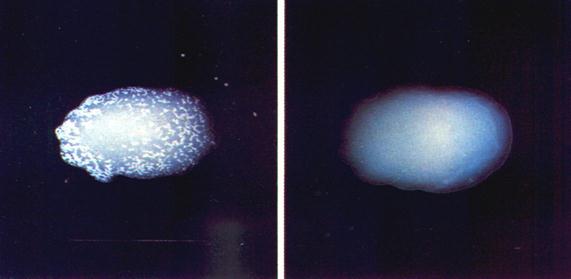 | Рис 16. Нуклеоид Bacillus subtilis | Рис.17. Капсулы Klebsiella pneumonae. Окраска по Гинсу-Бурри |