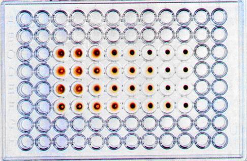 | | | | | Культура клеток Центрифугирование Электрофорез Перенос антигенов на бумагу Обработка сывороткой пациента, постановка ИФА Учет | | | | | Результаты иммуноблотинга считаются положительными при обнаружении антител к р24, р31, gp41, Gp120. Положительный результат (наличие антител к ВИЧ) характеризуется светло-коричневым окрашиванием содержимого лунки. Иммуноферментный анализ | | |
