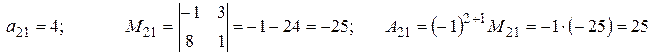 При вычислении определителей разложением по строке или столбцу, со знаком “+” и “-“ перед слагаемыми