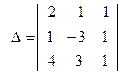 S: Последовательность нахождение решения систем линейных уравнений по формулам Крамера