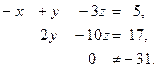 На втором этапе (обратный ход) полученной ступенчатой матрице составляют, соответствующую систему уравнений