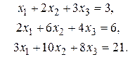Пример 1. Исследовать системы линейных уравнений. Для совместных систем найти общее и одно частное решение: