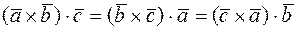 -смешанное произведение не меняется при перестановке знаков векторного и скалярного умножения;