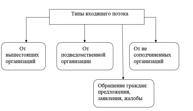 • Документы от подведомственных организаций, содержащих сведения о выполнении распорядительных действий, запросы о путях выполнения заданий и отчетные сведения о своей деятельности. По видам документов этот поток состоит из отчетов (о финансовой, хозяйственной, социальной, управленческой деятельности), инициативных докладных записок, писем, актов.