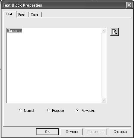 6. Во вкладке Purpose внесите цель - "Purpose: Моделировать текущие (AS-IS) бизнес-процессы компании" и точку зрения - "Viewpoint: Директор".