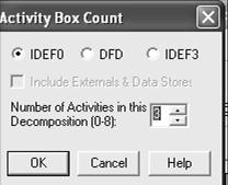 в палитре инструментов и в диалоге Activity Box Count (рисунок 6) установите число работ на диаграмме нижнего уровня - 3 - и нажмите ОК.