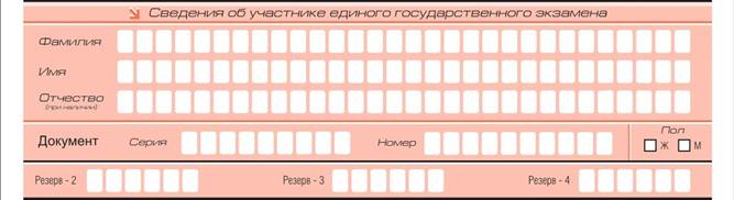 В средней части бланка регистрации (рис. 3) расположены поля для записи сведений об участнике ЕГЭ.