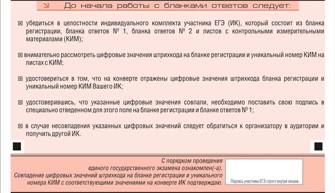 Рис. 4. Краткая инструкция по определению целостности индивидуального комплекта участника ЕГЭ