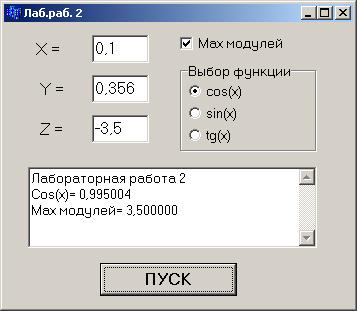 Запустите программу и убедитесь в том, что все ветви алгоритма выполняются правильно. Форма приведена на рис. 2.1.
