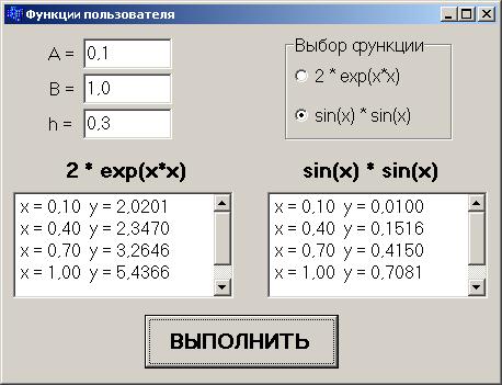 Панель диалога с полученными результатами представлена на рис. 4.1, а текст программы может иметь следующий вид: