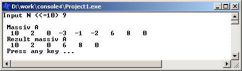 С заполненным случайными числами массивом А результат программы может быть следующим: