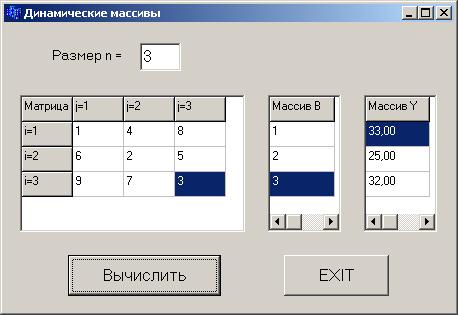 Для изменения размера n используется функция-обработчик EditChange, полученная двойным щелчком по компоненте Edit.
