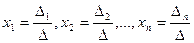 - получается из определителя Δ заменой i-го столбца на столбец свободных членов.