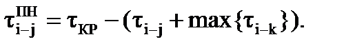 Свободный резерв времени работы – максимальное время, на которое можно увеличить продолжительность работы, не изменяя при этом ранних сроков начала последующих работ при условии, что непосредственно предшествующее событие поступило в своей ранний срок: