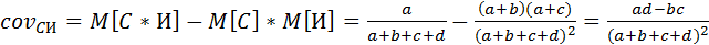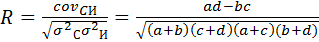Коэффициент линейной корреляции R выдачи и релевантности документов представляет собой корреляционный момент двух случайных величин: С – «быть выданным документом» (формально релевантным с точки зрения системы)и И – «быть релевантным» (истинно релевантным с точки зрения пользователя).