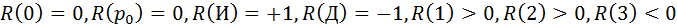 Очевидно, что в различных точках координат <n,x> значения (знаки) R следующие: