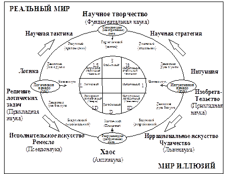 Научное творчество есть логическое осознание интуитивно воспринятых образов реального мира. А также - расшифровка и оформление осознанных образов на научном языке.