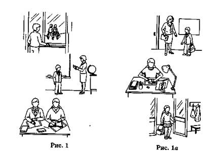 На рис. 1 и 1а изображены дети в различных ситуациях, связанных со школой и учением.