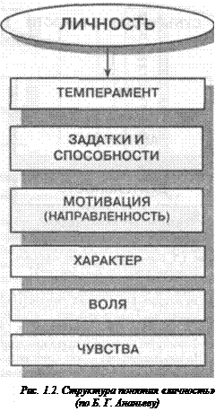 Другое понятие, характеризующее человека как объект реального мира, — «личность». Данное понятие, как и понятие «индивид», имеет различные варианты толкования. В частности, под личностью понимается индивид как субъект социальных отношений и сознательной деятельности. Некоторые авторы под личностью понимают системное свойство индивида, формирующееся в совместной деятельности и общении. Есть и другие толкования этого понятия, но все они сходятся в одном: понятие «личность» характеризует человека как социальное существо (рис. 1.2). В рамках данного понятия рассматриваются такие психологические свойства личности, как мотивация, темперамент, способности и характер.