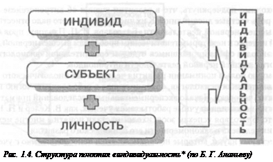 Ананьев выделял в системе человекознания четыре основных понятия: индивид, субъект деятельности, личность и индивидуальность.