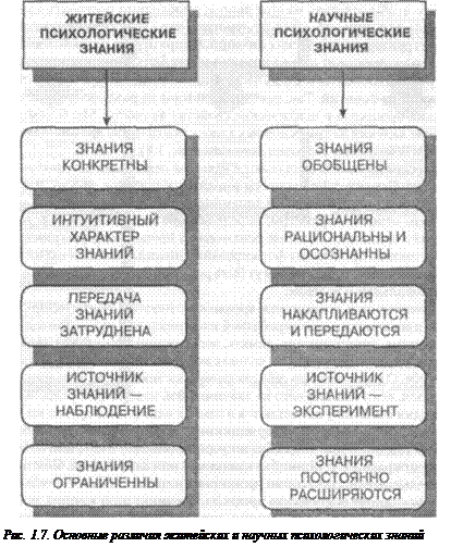 Однако житейские психологические знания очень приблизительны, расплывчаты и во многом отличаются от научных знаний. В чем состоит это отличие (рис. 1.7)?