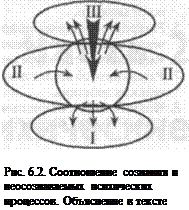 Если схематично представить соотношение рассматриваемых нами процессов и сознания (рис. 6.2), в центре мы должны поместить сознание, остальные процессы будут располагаться вокруг него. Внизу будут располагаться неосознаваемые механизмы сознательных действий (1). По своей сути это технические исполнители сознательных актов. Большинство из них образовалось в результате передачи функций сознания на неосознаваемые уровни.