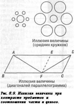 же диаметра, находящийся среди кругов значительно меньшего размера (рис. 8.9). Подобное искажение восприятия, вызванное условиями восприятия, принято называть иллюзией.