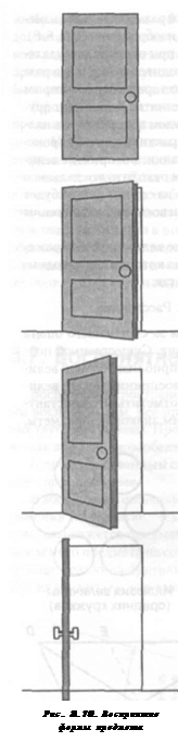 Столь же сложным, как восприятие величины, является восприятие формы предмета. Прежде всего, следует отметить, что при восприятии формы явление константности также сохраняется. Например, когда мы смотрим на квадратный или круглый предмет, находящийся сбоку от нас, его проекция на сетчатке будет выглядеть как эллине или как трапеция. Тем не менее мы всегда видим один и тот же предмет одинаковым, имеющим одну и ту же форму. Таким образом, восприятие формы оказывается постоянным и устойчивым, т. е. константным. Основой этого постоянства является то, что учитывается поворот предмета к нам. Причем, как и в случае с восприятием величины, восприятие формы в значительной степени зависит от нашего опыта (рис. 8.10).