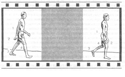 направлениях, хотя глаз, очевидно, не может двигаться одновременно в противоположные стороны. В то же время впечатление движения может возникнуть при отсутствии его в реальности, например если через небольшие временные паузы чередовать на экране ряд изображений, воспроизводящих фазы движения объекта (рис. 8.11). Это так называемый стробоскопический эффект, для возникновения которого отдельные раздражители должны быть отделены друг от друга определенными промежутками времени. Пауза между смежными раздражителями должна быть не менее 0,06 с. В том случае, когда пауза вдвое меньше, изображения сливаются; в том случае, когда пауза очень велика (например, 1 с), изображения осознаются как раздельные; максимальная пауза, при которой имеет место стробоскопический эффект, равна 0,45 с. Следует отметить, что на стробоскопическом эффекте построено восприятие движения в кинематографе.