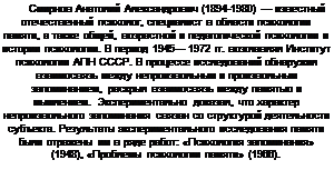Посвященное той же проблеме исследование А. А. Смирнова подтвердило, что непроизвольное запоминание может быть продуктивнее, чем преднамеренное: то, что испытуемые запоминали непроизвольно, попутно в процессе деятельности,