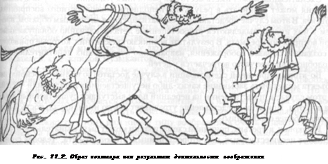 Простейшей формой синтеза в процессе воображения является агглютинация, т. е. создание нового образа путем присоединения в воображении частей или свойств одного объекта другому. Примерами агглютинации могут служить: образ кентавра, образ крылатого человека в рисунках североамериканских индейцев, образ древнеегипетского божества (человек с хвостом и звериной головой) и т. д. (рис.. 11.2).