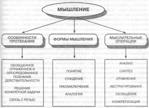 Этот многоступенчатый переход — от единичного к общему и от общего опять к единичному — осуществляется благодаря особому психическому процессу — мышлению. Мышление является высшим познавательным психическим процессом. Суть данного процесса заключается в порождении нового знания на основе творческого отражения и преобразования человеком действительности.