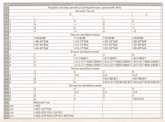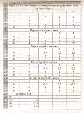 В табличном процессоре Excel для решения систем уравнений есть два варианта: реализация алгоритмов в электронной таблице с помощью основных средств табличного процессора и использование специальных средств.