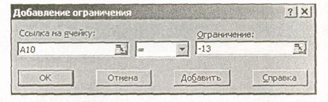 Теперь необходимо ввести то, что в форме на рис. 2 именуется ограничениями. Щелкнув по кнопке Добавить, получают другую форму (рис.3).