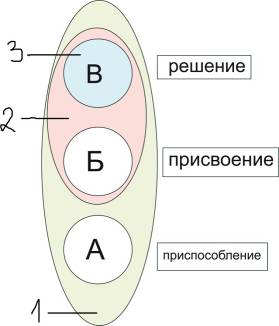 Субъект не может быть рассмотрен как изолированный от мира. Субъект включён в жизнь, в мир. В каждом из нас может быть три разных субъекта, каждый человек включён в разные предметные области – природа (А), общество (Б) и культура (В).