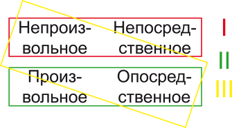 Второй критерий – средство. Если средство отсутствует, то и процесс будет назван непосредственным (внимание, запоминание). Ну а если средства появляются (осваиваются, формируются), то и процесс будет называться опосредствованным.