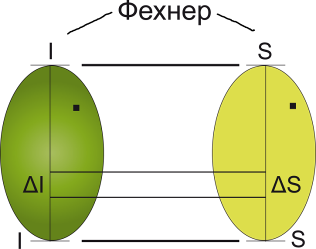 Начнём с главного – введения обозначений. Густав Фехнер основатель психофизики, который занимался соотношением тела и души, понял дело таким образом. Телами в его концепции были области воспринимаемых раздражителей, а аншлагом душ были вызываемые этими раздражителями ощущения. Ощущения могут восприниматься по своим качествам. Скажем, цвета. Фехнер предполагает вводить количественную меру.