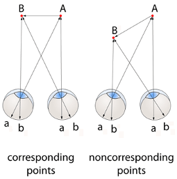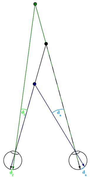 Человек двумя глазами оценивает удаленность и глубину. Бинокулярный параллакс. Когда человек фиксирует определённую точку, то угол, под которым попадает эта точка на сетчатки называется углом конвергенции. Точка при фиксации выглядит слитно и эта слитность называется фузией. Диспаратность – это отсутствие слияния, фузии на перцептивном языке. Посмотрим на собственный палец правым или левым глазом, увидим двоение и это двоение называется диплопия.