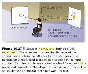 Поговорим о константности величины. Основной эксперимент с константностью провели Холуэйи Боринг(holway and boring experiment). Константность касается любого свойства объекта. Можно говорить о константности величины (относительная независимость величины от удаленности объекта), формы (относительная независимость от угла поворота, объекта повернут но его форма приближается к истинной), скорости и вообще о константности или стабильности мира.