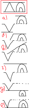 А) вывернулся наизнанку конус. Слоник остался на месте. Карандаш раздваивается. Одна половина картинки касается конуса, другая – слоника. Б) Карандаш оказывается изломанным. Также касается спины слоника и стремится к вершине конуса, который превратился в воронку. В) Карандаш не потерял предметности, но утратил ориентацию. Г) Конус превратился в воронку, но карандаш не потерял своего предметного содержания и как бы висит в пространстве, опираясь лишь на спинку слоника. Д) Доминирует в картине конус, который превратился в воронку и карандаш сохранил свою предметность. Но слоник изменил свою ориентацию. Е) Обернулся конус в воронку. Карандаш сохранил предметность. А слоник тут стоит на карандаше. Но константность формы слоника не меняется.