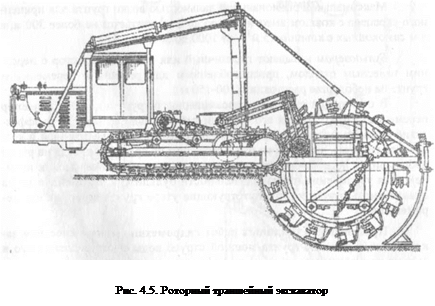 Многоковшовые экскаваторы. Разработку узких траншей с вертикальными стенками для прокладки различных трубопроводов (водопроводных, канализационных, газовых и др.) производят многоковшовыми цепными или роторными экскаваторами (рис. 4.5) с отвалом грунта вдоль траншеи.