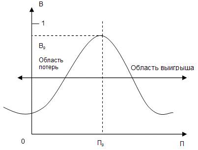 1) наиболее вероятно получение прибыли, равной расчетной величине — Пр Вероятность (Вр) получения такой прибыли максимальна и значение П можно считать математическим ожиданием прибыли. Вероятность получения прибыли, большей или меньшей по сравнению с расчетной, монотонно убывает по мере роста отклонений;