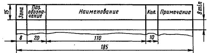 Расстояние между перечнем элементов и основной надписью должно быть не менее 12 мм.