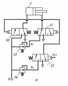 5 - пневматический цилиндр; 10, 11, 13 - пневмораспределители типа 3/2; 12,14 - редукционные пневмоклапаны давления Задание 4