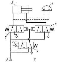 3 - пневматический цилиндр; 4 - пневматический мотор; 7,8, 9 - пневматические распределители; Задание 5