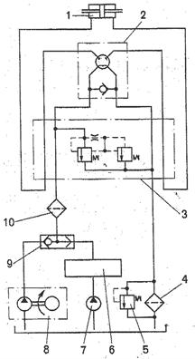 1 - исполнительные гидроцилиндры; 2 - гидравлический рулевой механизм; 3 -
