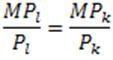 Правило наименьших издержек – оптимальное сочетание факторов производства достигается тогда, когда последний затраченный рубль на покупку каждого фактора дает одинаковый прирост общего выпуска продукции: