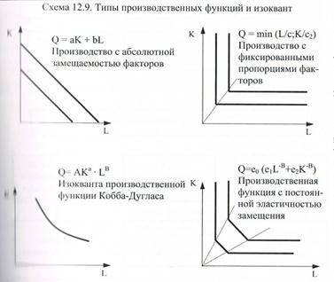 Производственная функция – математическое описание зависимости между любым набором факторов производства и максимально возможным объемом продукции, производимым из набора этих факторов; используется для определения минимального количества затрат, необходимых для производства данного объема товаров.