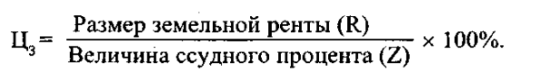 Таким образом, цена земли (Ц3) представляет собой капитализированную земельную ренту.