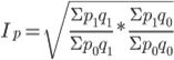 р0 - цены товаров и услуг в базисном году, р1 - цены товаров в текущем году. Суммирование производится по всем товарам и услугам, входящим в набор.